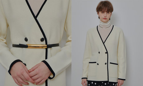 春の新定番、ガーターノーカラーニットジャケット